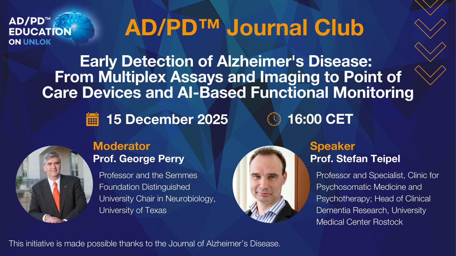 Join us for a special AD/PD™ Live Journal Club featuring Dr. Stefan Teipel, who will guide us through an exciting new special issue exploring the cutting edge of early Alzheimer’s disease detection.