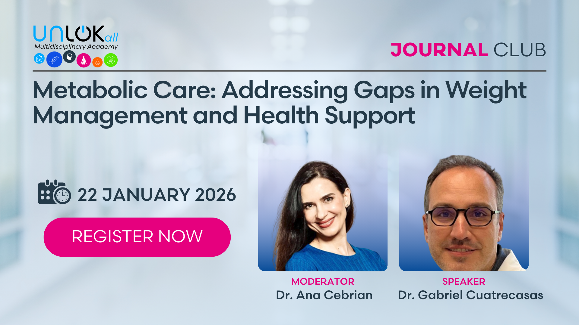 Under the expert guidance of Dr. Ana Cebrian, this case-based discussion will explore real-world challenges and evidence-based strategies for addressing gaps in the diagnosis, treatment, and long-term management of metabolic disorders and obesity.