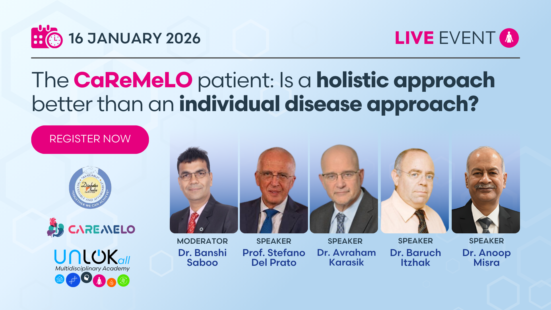 We invite you to an exclusive one-hour virtual, case-based session designed for primary care physicians. Guided by Dr. Banshi Saboo and featuring internationally recognized experts, this interactive session will explore a comprehensive, patient-centered approach to managing complex cases involving diabetes, CKD, and cardiometabolic risk.