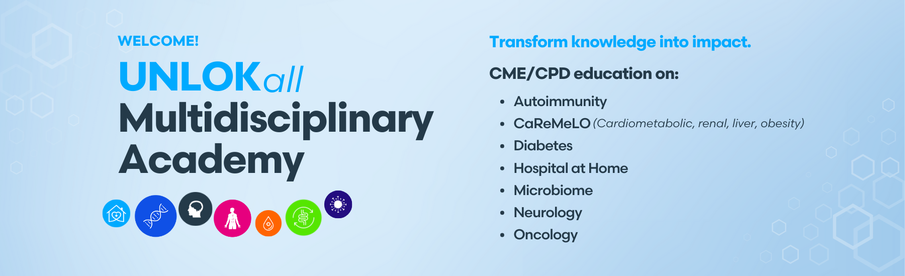 The education hubs available on UNLOKall offer CME activities across different disciplines, supporting a multidisciplinary audience (from general practitioners and specialists to students, nurses, and allied health professionals).